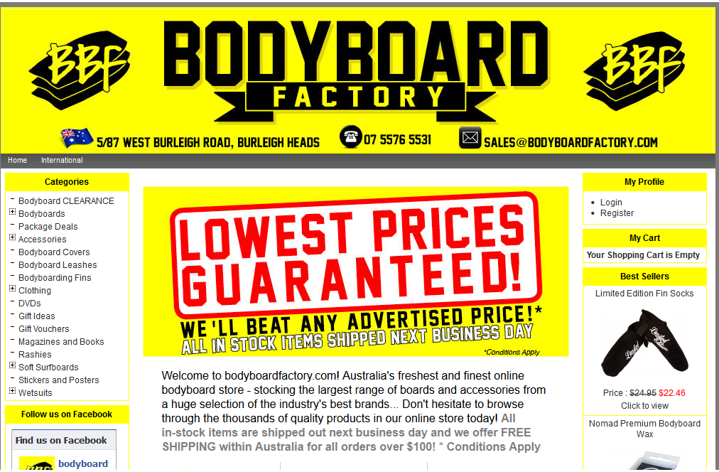 We are now proud to offer the public access to our FACTORY OUTLET located on the Gold Coast, Queensland. You can now drop in, visit us and check out the thousands of unbeatable bargains on top brand bodyboards, clothing and accessories!